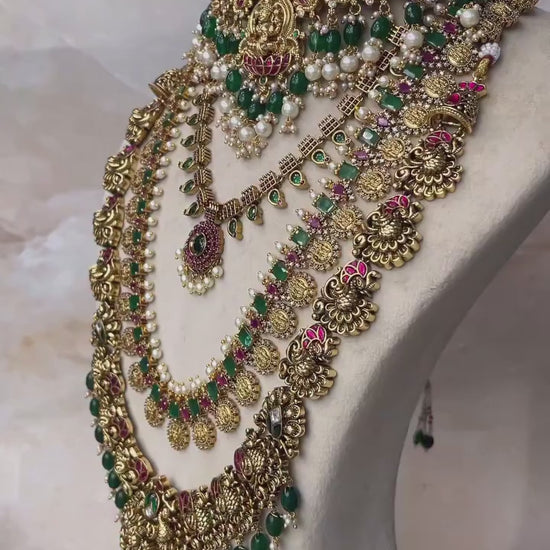 Discover the New Arrivals Super Kemp Necklace Set, a masterful blend of traditional craftsmanship and timeless elegance. This set features rich, vibrant kemp stones meticulously set to enhance any formal or festive ensemble. Expertly designed to offer both durability and intricate beauty, it elevates your look with a regal touch, making it a valuable addition to your jewelry collection. Ideal for special occasions, this necklace set brings a distinguished charm that resonates with authentic heritage jewelry artistry.
